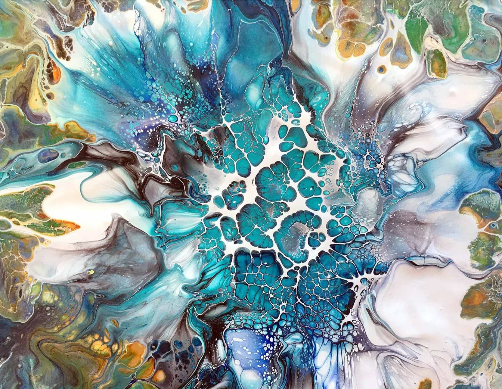 I work with artist’s acrylic paints, pigments and mixed mediums on varying sizes of artist’s professional stretched cotton canvas and wooden panels.